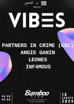 Llega la experiencia VIBES a Mallorca. De la mano de TEMPO y GOODSOUND EVENTS, con DJ'S como ANGIE GANIN, PARTNERS IN CRIME (desde Holanda), LEONES o INF4MOUS, que te harán vibrar durante toda la noche, con la mejor música electrónica que te puedas imaginar.